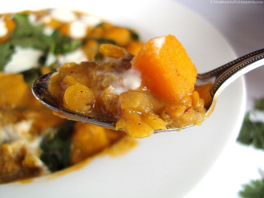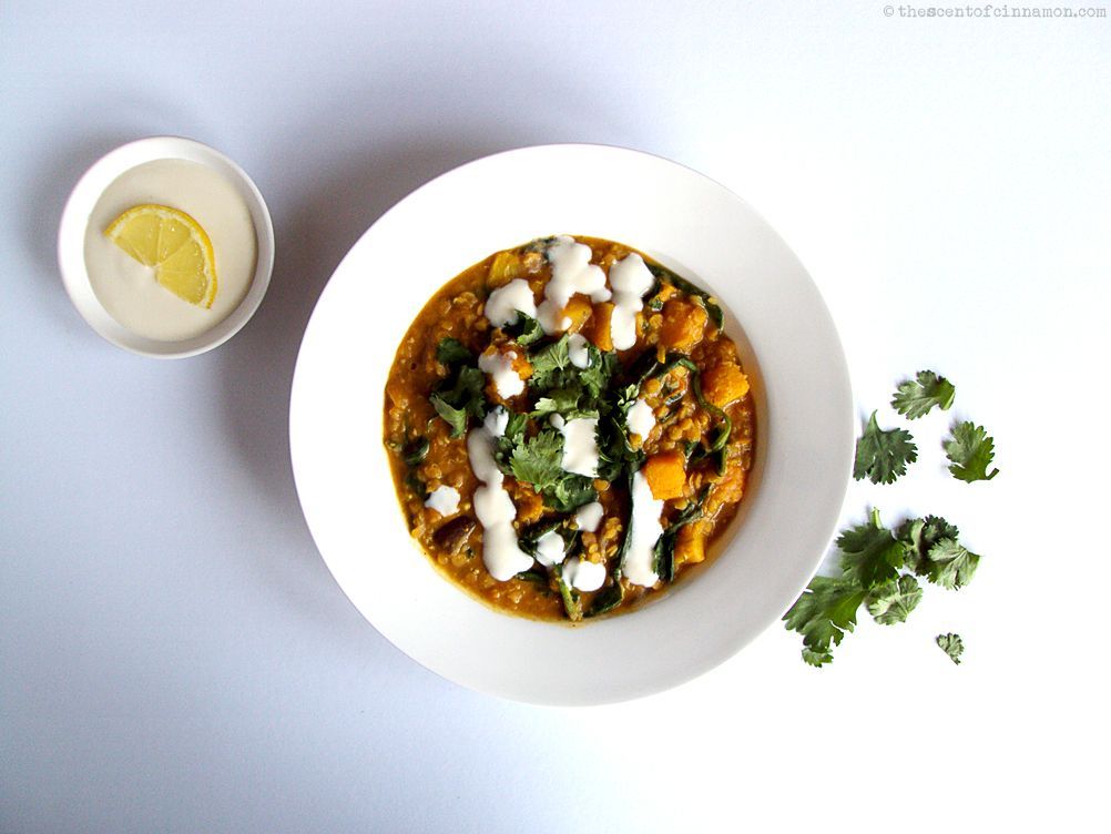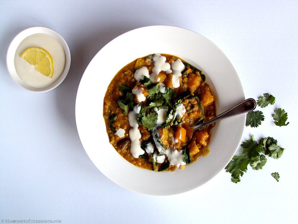 Recept – Linzencurry met pompoen en spinazie